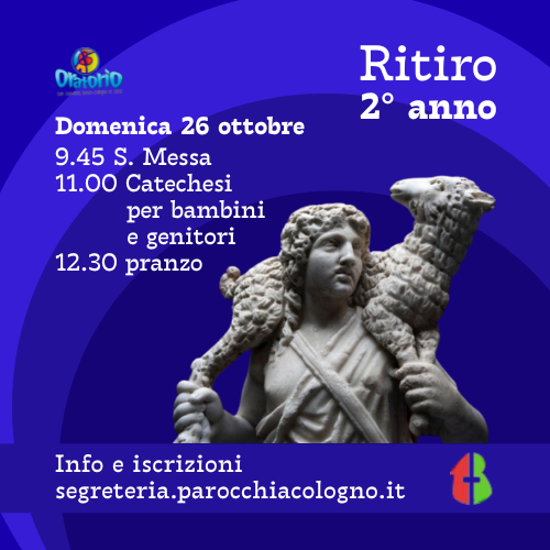 Ricordiamo che tutti i ragazzi sono invitati al ritiro di domenica; è quindi sospesa la catechesi di venerdì 24 ottobre.