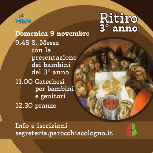 Ricordiamo che tutti i ragazzi sono invitati al ritiro di domenica, è quindi sospesa la catechesi di venerdì 7 novembre.
