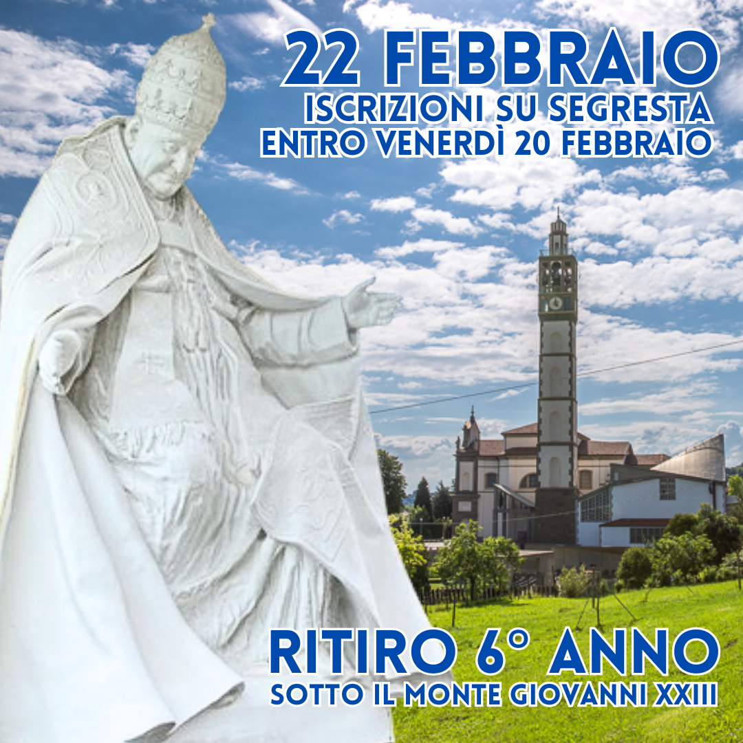 come comunicato a inizio anno DOMENICA 22 FEBBRAIO 2026 si terrà il ritiro spirituale per ragazzi e famiglie a Sotto il Monte Giovanni XXIII, per affidare il nostro cammino al Santo Papa Giovanni XXIII.