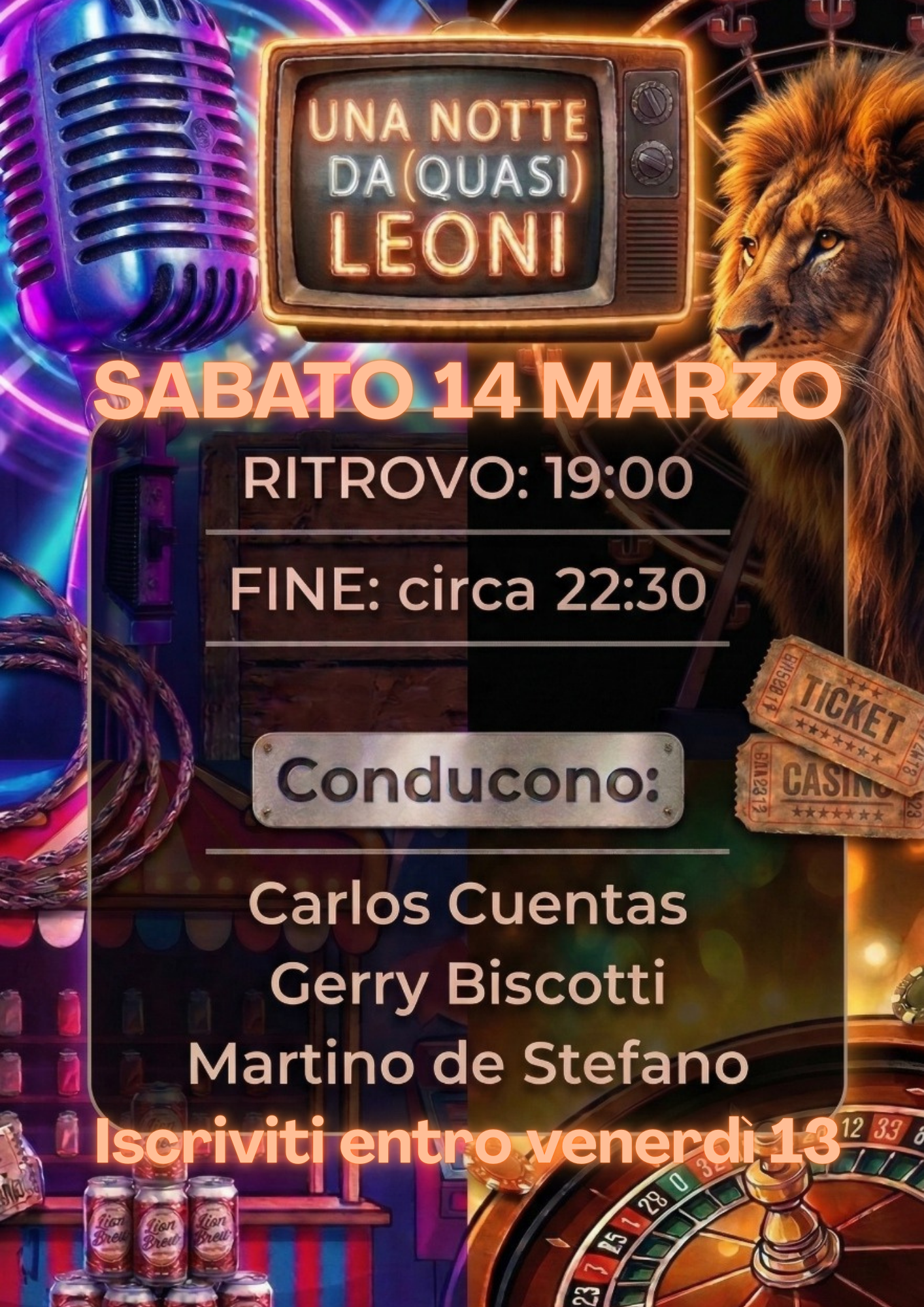 dalle 19.30 alle 22.30 per una serata all'insegna della fraternità e del divertimento.